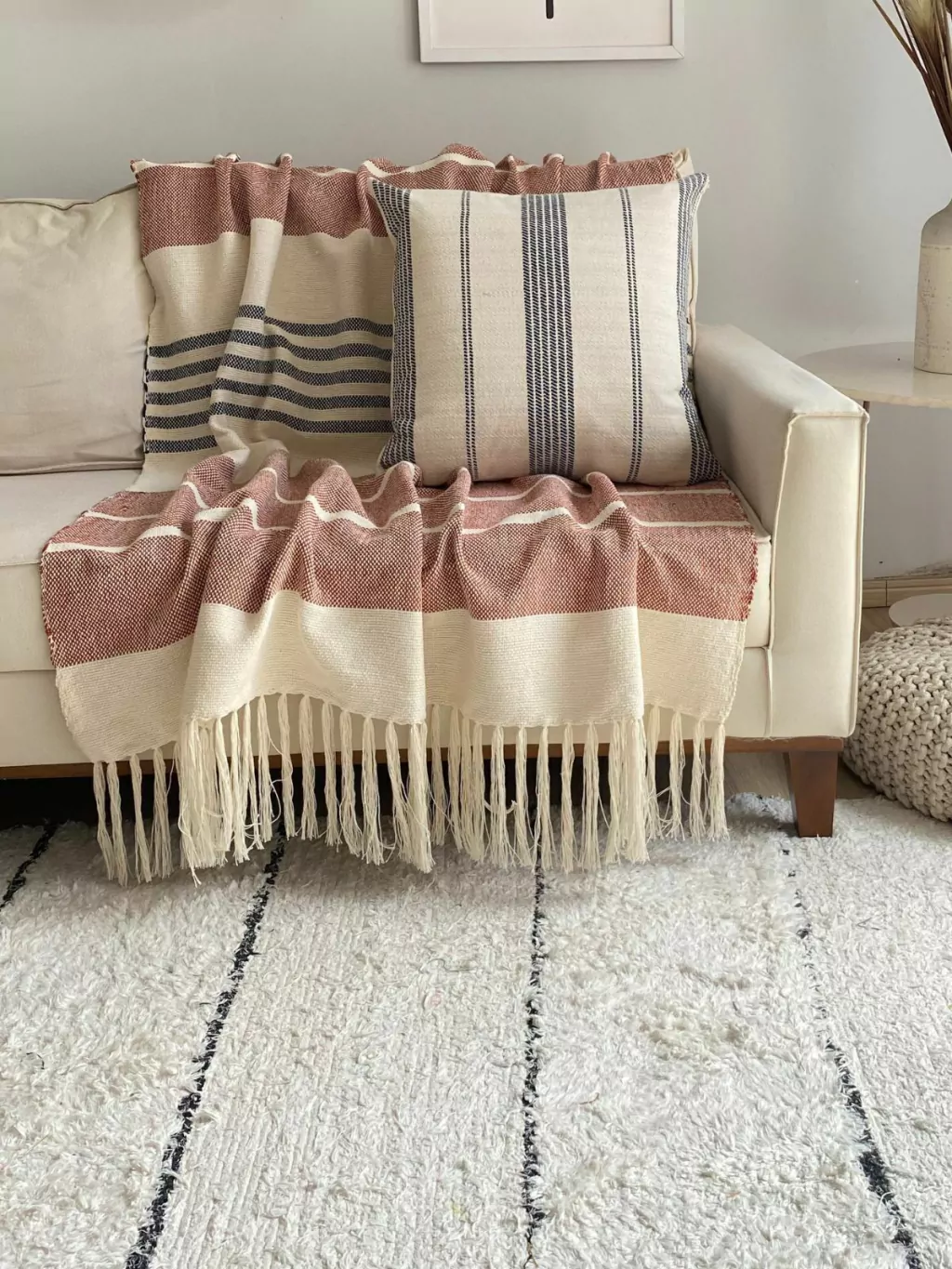 A Capa de Almofada Boho Artisan 50cm possui o formato quadrado e acabamento artesanal complementando o ambiente com um ar rústico e moderno. Aposte também em formatos e texturas diferentes para adicionar à sua composição.