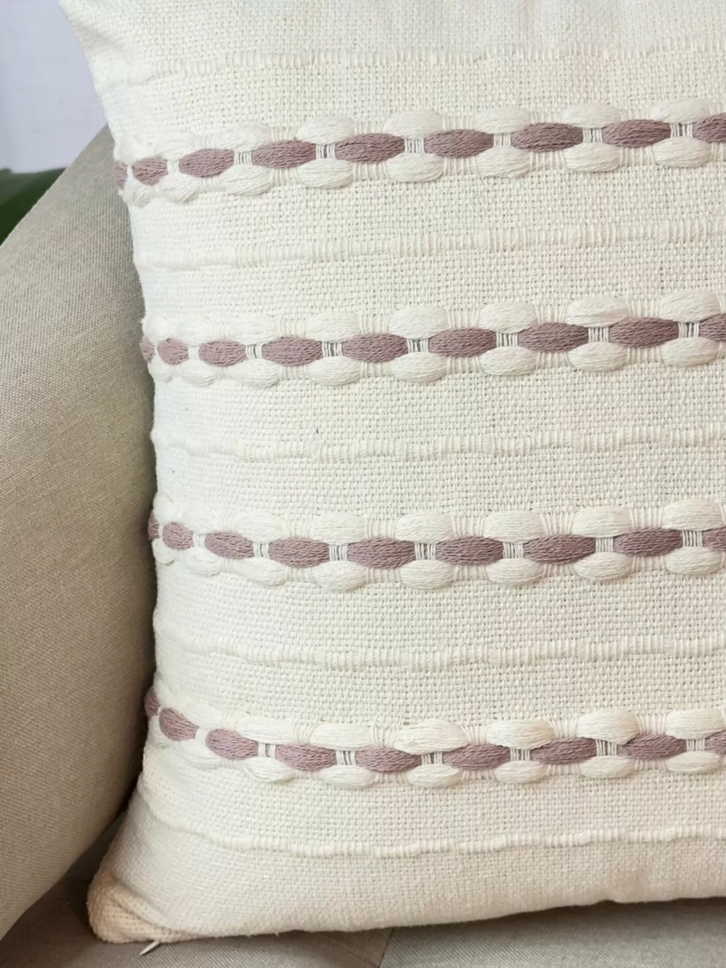 A Capa de Almofada Monic Rosa Seco 43cm possui o formato quadrado e acabamento artesanal complementando o ambiente com um ar rústico e moderno. Aposte também em formatos e texturas diferentes para adicionar à sua composição.