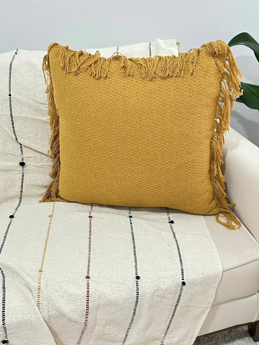 A Capa De Almofada Chevron Boho Chic Mostarda C/ Franjas 50cm é confeccionada em Algodão com toque macio e tasséis na lateral . As trama do chevron é diferenciada e bem contemporânea, trazem para o ambiente estilo e aconchego, este grafismo surgiu na Grécia.o chevron dará o recado de modernidade, e elegância na decoração.A capa é tecida em tear manual, é realmente especial, pois cada peça é única, refletindo o trabalho artesanal e a atenção aos detalhes. Essa capa têm uma qualidade e textura distintas, resultado em um produto final encantador.