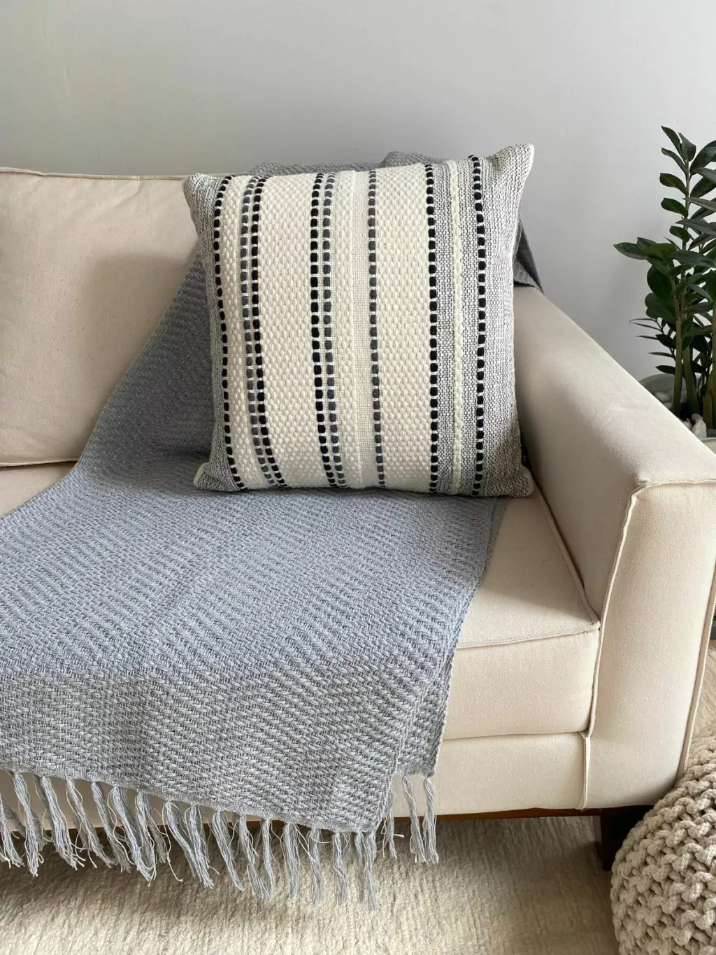 Confeccionada em algodão com toque macio, a Capa de Almofada Minsk Preto 45cmx45cm possui o formato quadrado e acabamento artesanal complementando o ambiente com um ar rústico e moderno. Aposte também em formatos e texturas diferentes para adicionar à sua composição.