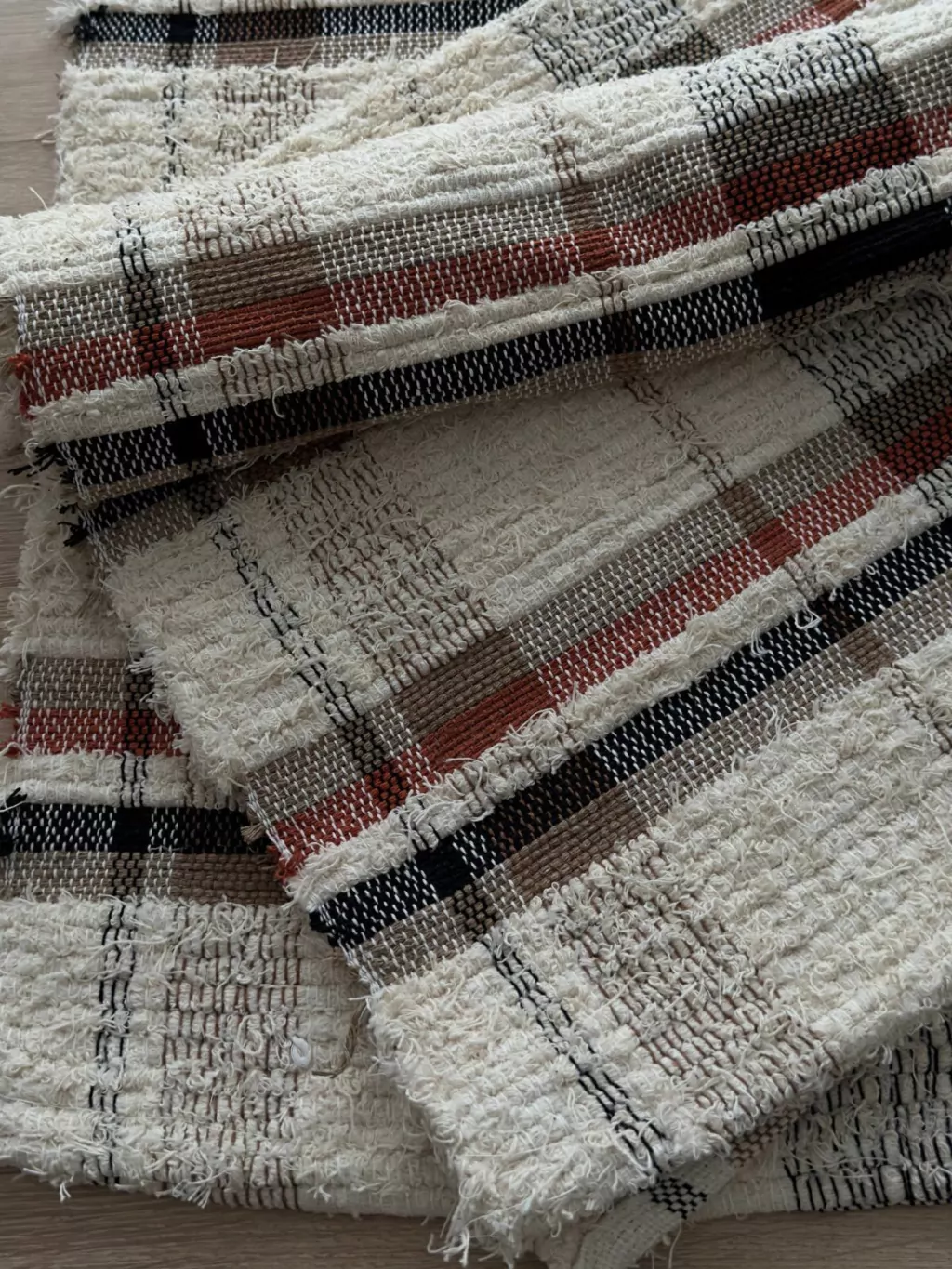 O Jogo de Tapetes Xadrez 3 Pcs.Apresenta um desing rústico e acolhedor, com tons neutros que harmonizam facilmente com qualquer ambiente.As listras em tons Marrom, criam um contranste suave ,destacando a simplicidade e a elegância do estilo artesanal.Feito com material resistente e de toque confortável, é ideal para cozinha ou corredor , proporcionando uma sensação de aconchego e naturalidade ao espaço.