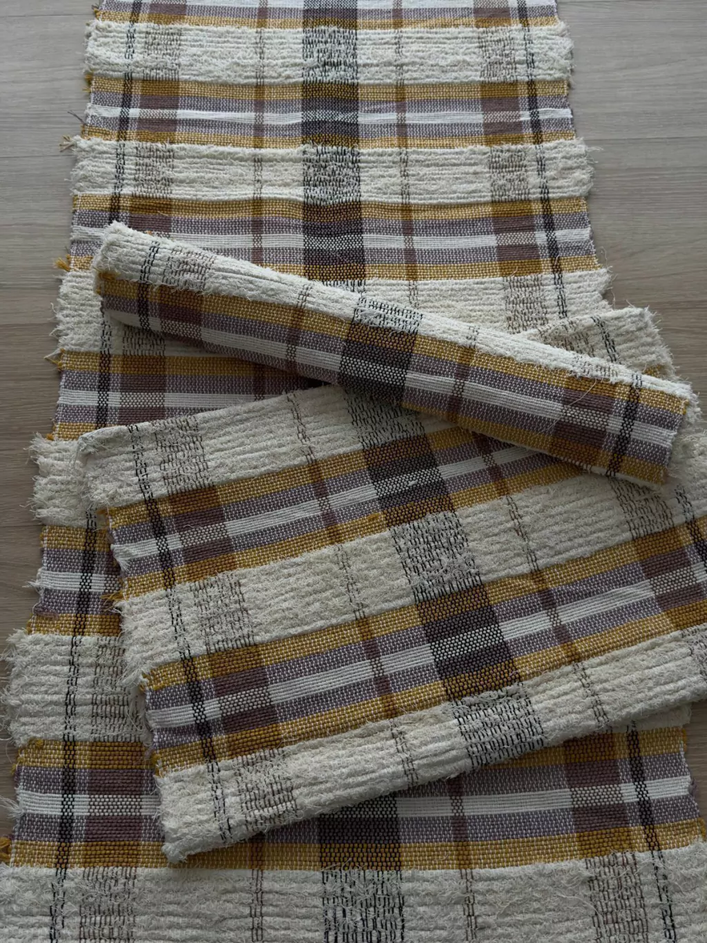 O Jogo de Tapetes Xadrez Rústico 3 Pcs.Apresenta um desing rústico e acolhedor, com tons neutros que harmonizam facilmente com qualquer ambiente.As listras em tons Mostarda , Rosa e Cru criam um contranste suave ,destacando a simpricidade e a elegância do estilo artesanal.Feito com material resistente e de toque confortável, é ideal para cozinha ou corredor , proporcionando uma sensação de aconchego e naturalidade ao espaço.