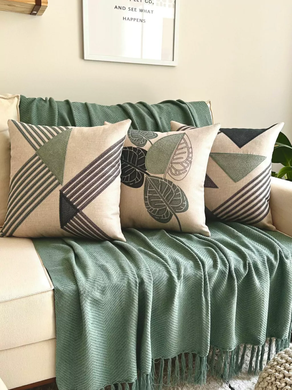 Kit C/3 Capas De Almofadas Linho Folhagens c/ Aplique Boucle 43x43, confeccionada em linho de poliéster, possui toque macio e zíper invisível. Esse material contém todos os aspectos do linho puro, porém, leva poliéster em sua composição garantindo mais durabilidade para a peça. As almofadas dão um toque de aconchego e personalidade para Decoração podendo ser combinadas de diversas formas, complemente sua composição com nossas mantas decorativas e almofadas de texturas ou estampas diferentes.