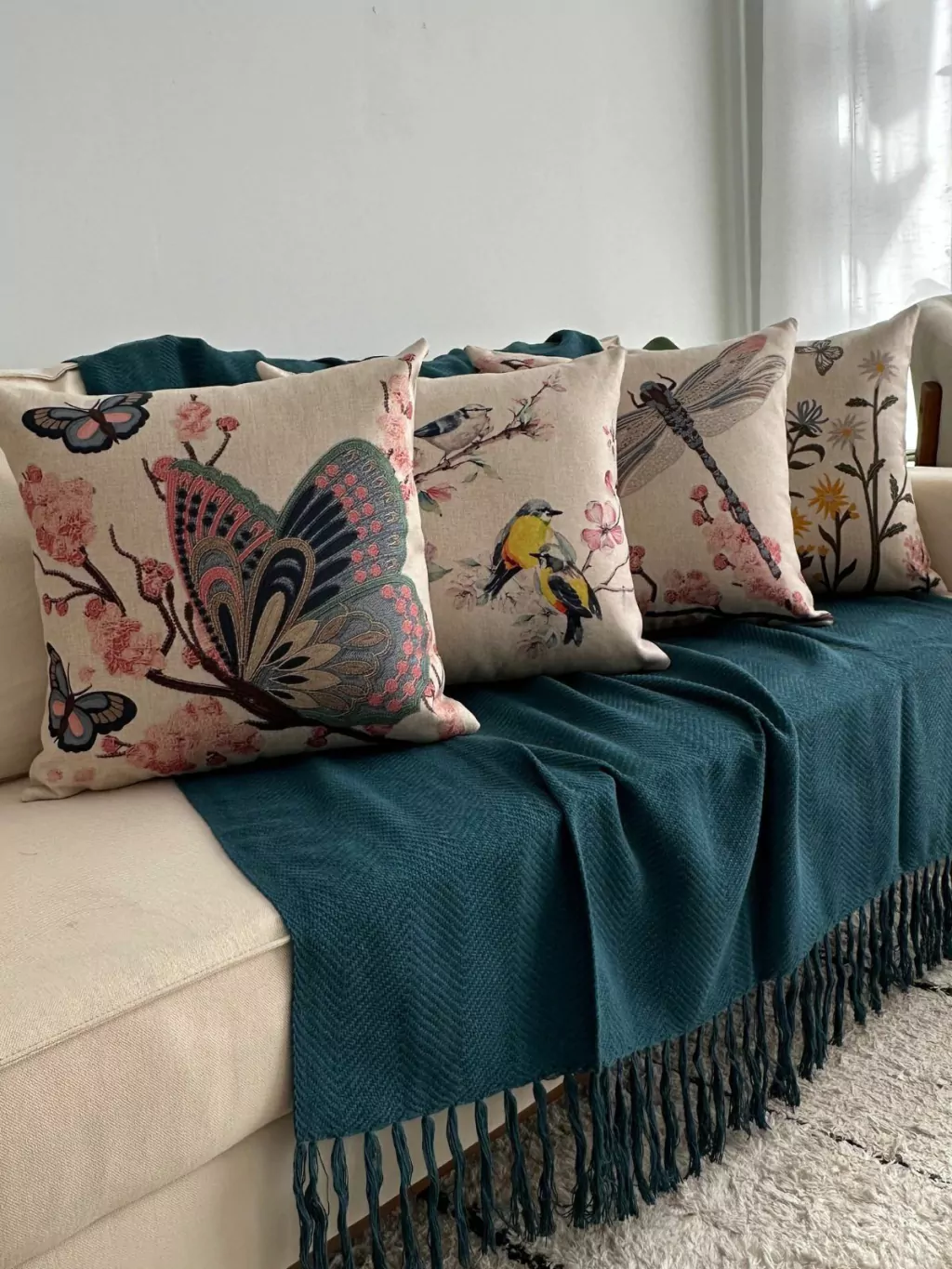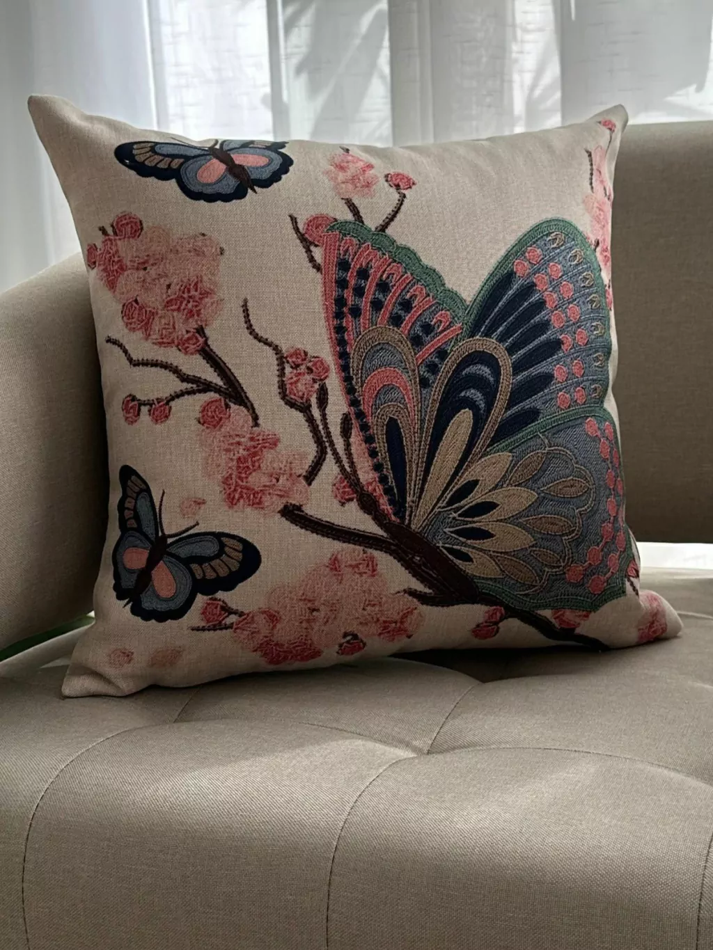 Kit 4 Capas De Almofadas Linho Borboletas No Jardim 43x43, confeccionada em linho de poliéster, possui toque macio e zíper invisível. Esse material contém todos os aspectos do linho puro, porém, leva poliéster em sua composição garantindo mais durabilidade para a peça. As almofadas dão um toque de aconchego e personalidade para Decoração podendo ser combinadas de diversas formas, complemente sua composição com nossas mantas decorativas e almofadas de texturas ou estampas diferentes.
