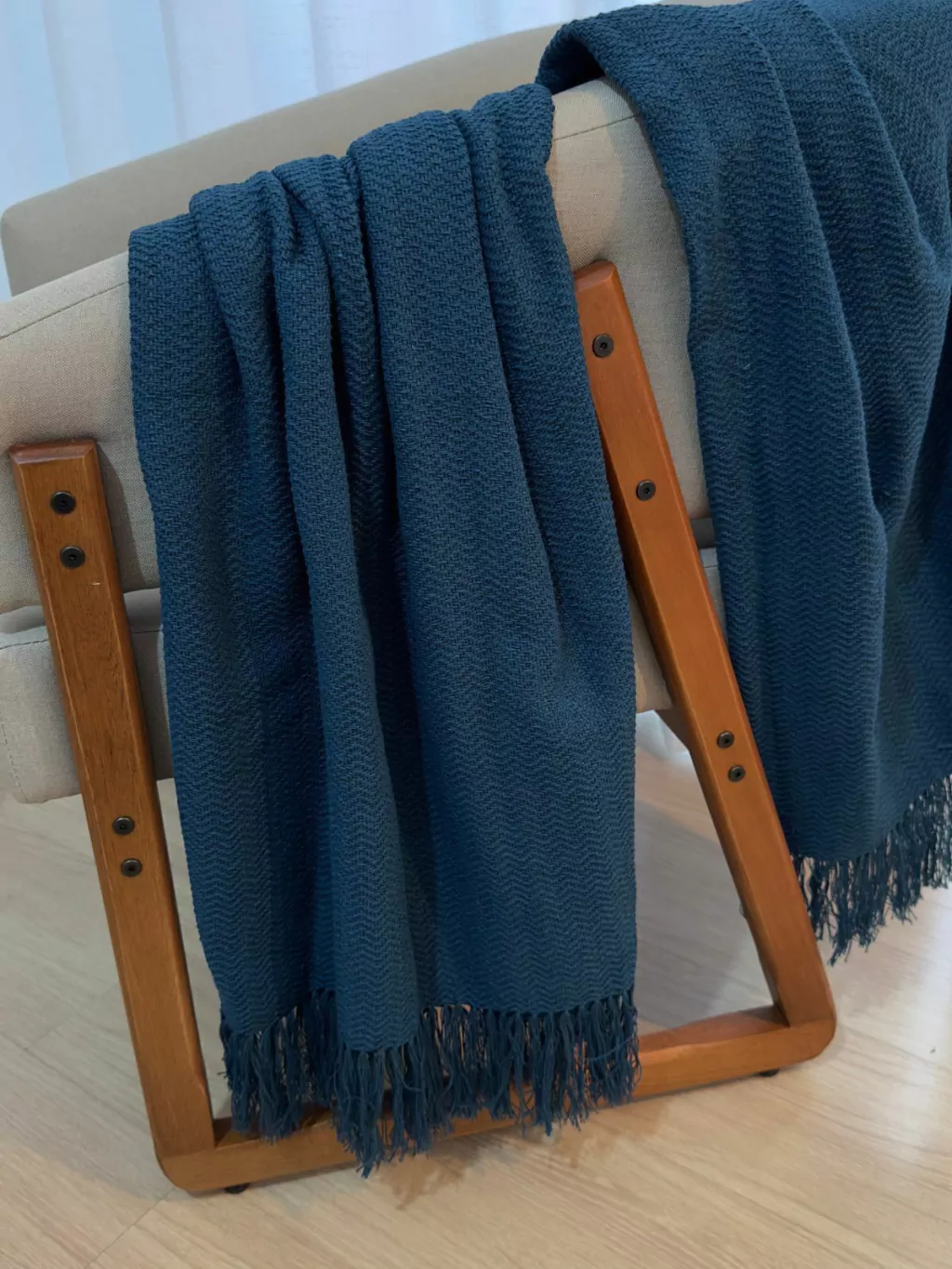 A Manta Decorativa Algodão chevron Azul Petróleo é confeccionada em Algodão. As trama do chevron é diferenciada e bem contemporânea, trazem para o ambiente estilo e aconchego, este grafismo surgiu na Grécia.o chevron dará o recado de modernidade, e elegância na decoração.