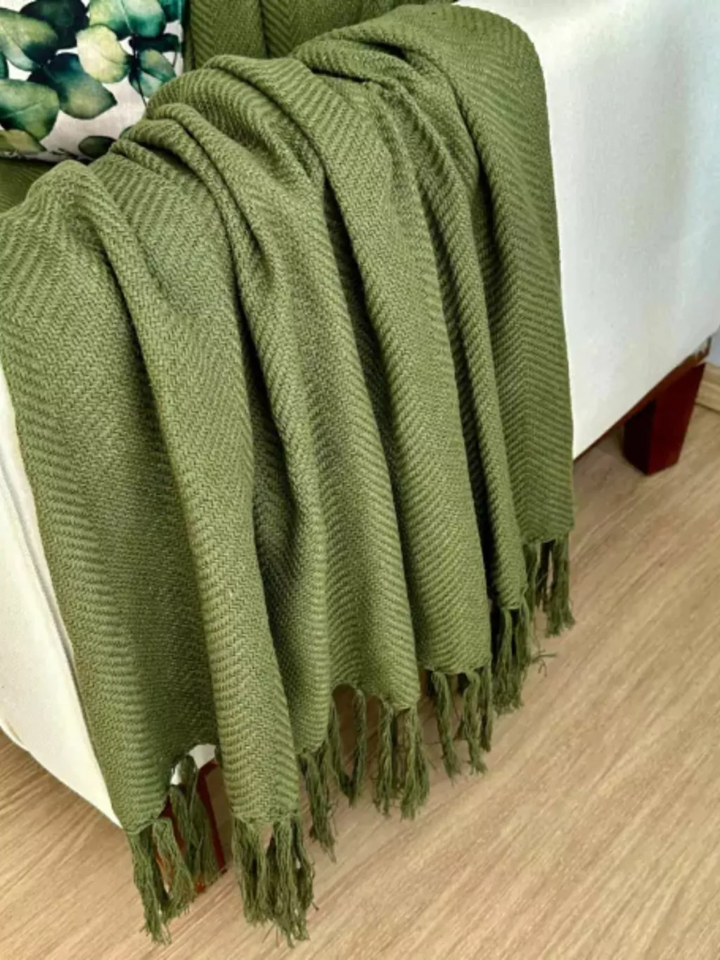 A Manta Decorativa Algodão Mya Verde Sálvia é confeccionada em Algodão. As tramas diferenciadas trazem para o ambiente estilo e aconchego, complete a decoração com almofadas!
